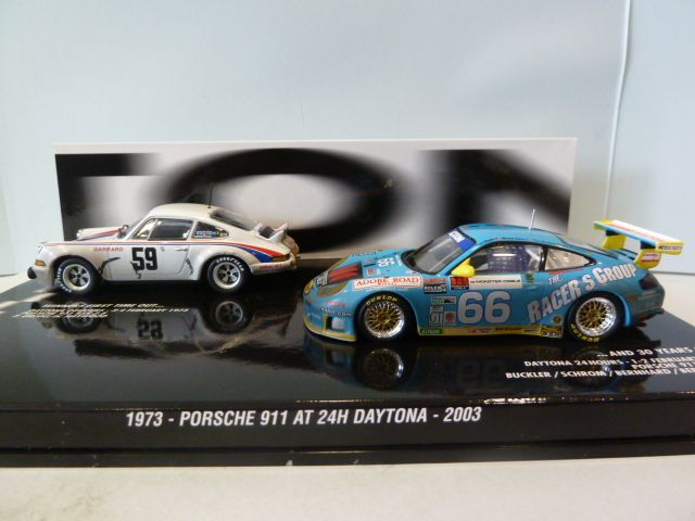 402036996 Minichamps Porsche 911 Carrera RSR + 996 GT3 White/blue 1:43 24h Daytona Double Winner 1973-2003